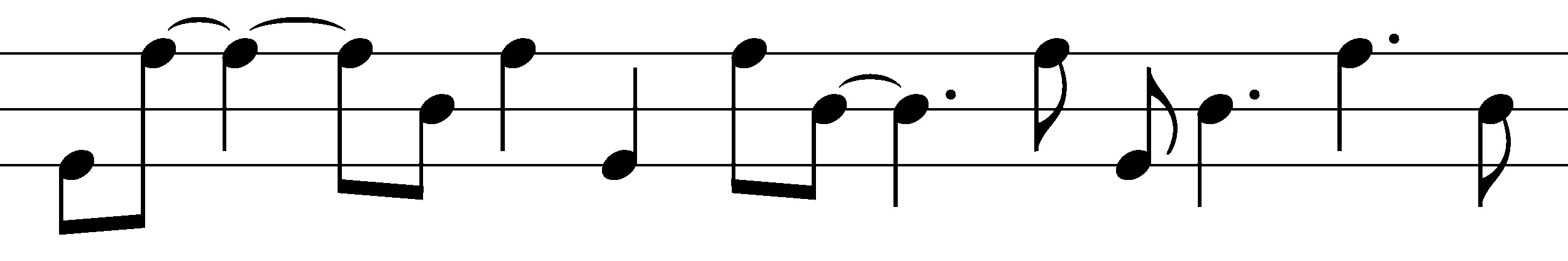 Per Nørgård has used it in a notation with triplets and quintuplets. Here it is practically modified to a divisive rhythm – with a deviation in the upper voice, with only four units between the second and the third note.
